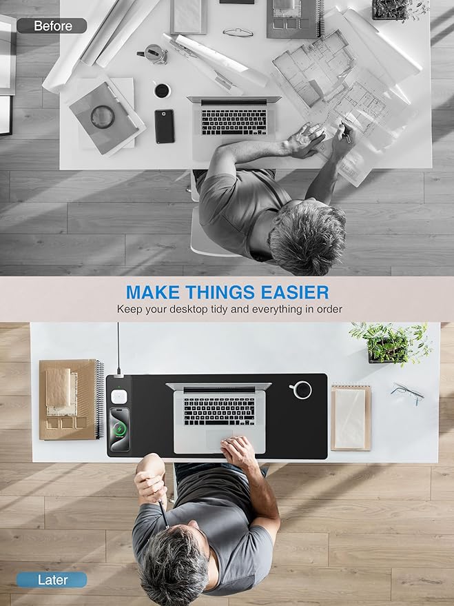 - 【XL Large 3-IN-1 Wireless Charging Mouse Pad for Desk】 TopMade XL mousepad is 31.5" x 11.81", the extra large usable area covers your desk keyboard, mouse, and other items while gaming or working, and combines 3 functions of phone charging, AirPods charging, and mouse pad in one, allowing you to charge your iPhone and AirPods while using the gaming mousepad without the need for additional cables interfering with your desk, keeping your desk neat and tidy