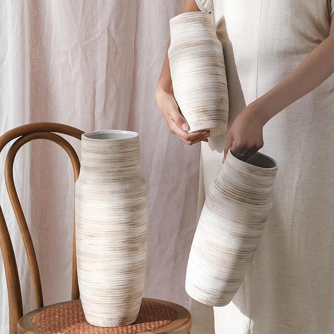 - Floor Vases Decorative Tall:Elevate your living room floor with this timeless large cylinder vase. Featuring a textured design,this tall floor vase seamlessly complements cozy minimalist,farmhouse,organic modern,coastal, and mid-century modern decor styles in 2025 trends.A perfect large vase for both indoor and outdoor decor. Whether on a entryway table, hallway,mantel, dining room, or bathroom,this big vase for decor living room floor elevates any space.