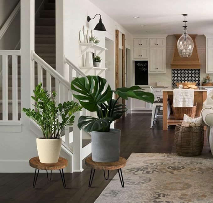 - 【Material】The top plate is made of natural wood material, you can clearly see the beautiful texture of the wood, it will combine your plants with the most primitive decorations and provide you a comfortable and natural feeling. The legs of the flower pot stand are made of METAL are more stonger than traditional wood legs. Our wooden stool display stand are strong and sturdy and can be used for a long time.