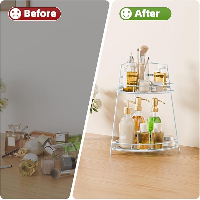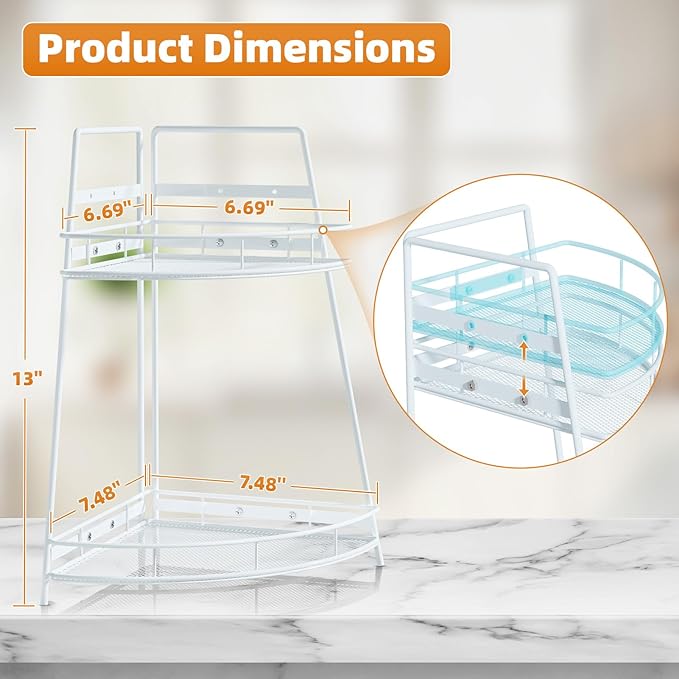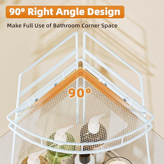 - 【Multi-Purpose Use】It's a great Ideal bathroom corner organizer, it can also be used on vanity tables for skincare products, in kitchens for spice racks, or as a decorative rack in the living room.