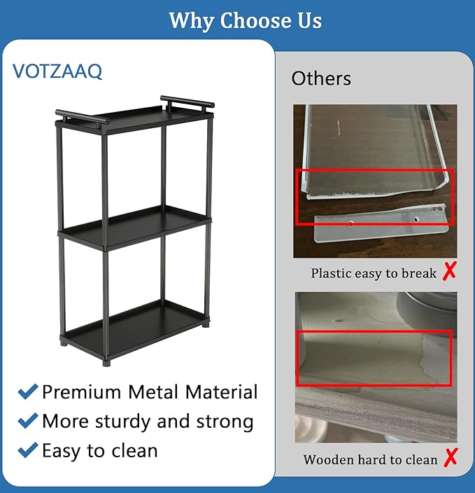 - PREMIUM METAL MATERIAL: This bathroom counter shelf is made of high-quality metal material and powder coating technology, so it is very hardness and strong bearing force that can be used for a long time, and waterproof, moisture-proof.
