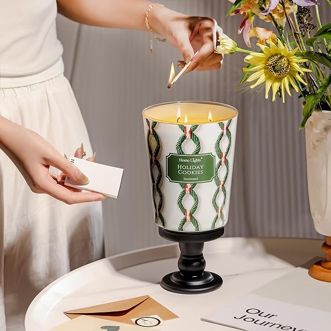HomeLights Holiday Cookies Scented Candles | 34oz Soy Candles Rustic Modern 3-Wick Large Candle Jars | Ideal Candle Gifts for Events, Home Decor Stress, Relief & Relaxation