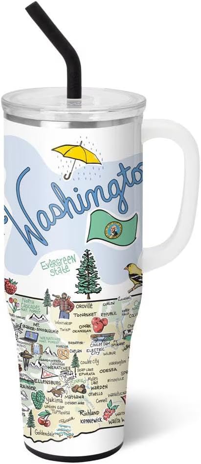 Swig Life 40oz Mega Mug, 40oz Tumbler with Handle and Straw, Extra Large Insulated Tumblers, Cup Holder Friendly Travel Mug (Washington)