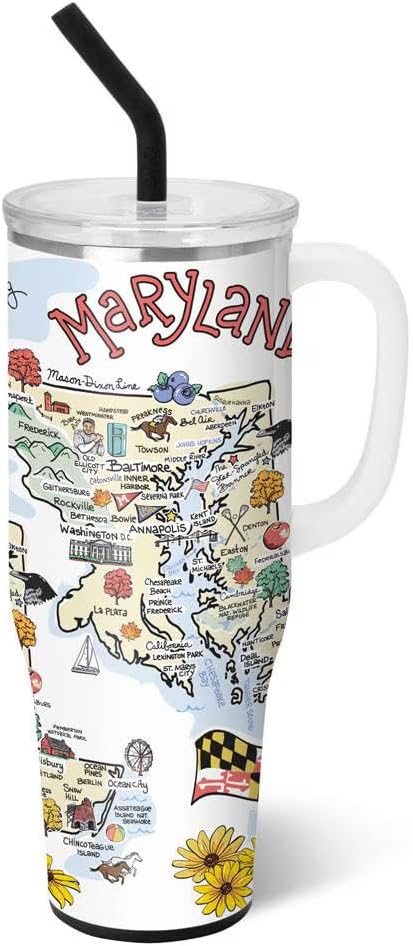 Swig Life 40oz Mega Mug, 40oz Tumbler with Handle and Straw, Extra Large Insulated Tumblers, Cup Holder Friendly Travel Mug (Maryland)