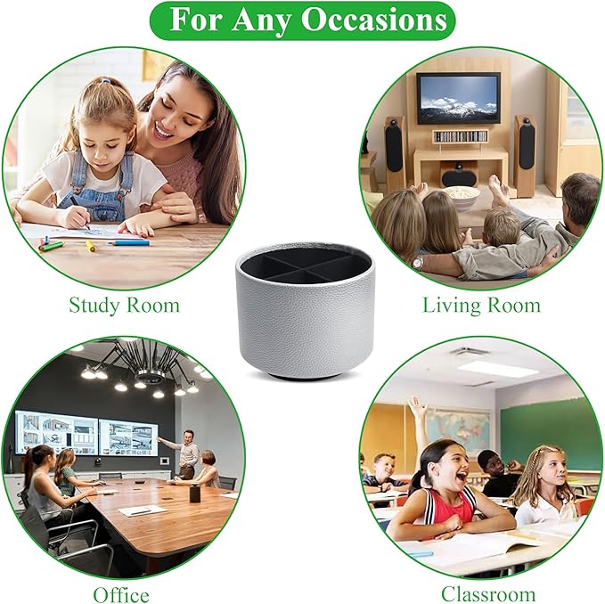 - ✎360° Revolving Design: You can freely rotate the pen holder steadily left and right,unique spinning base design allows easy access to items from any directions.The non-slip pads on the bottom keep it stay in place when rotating.