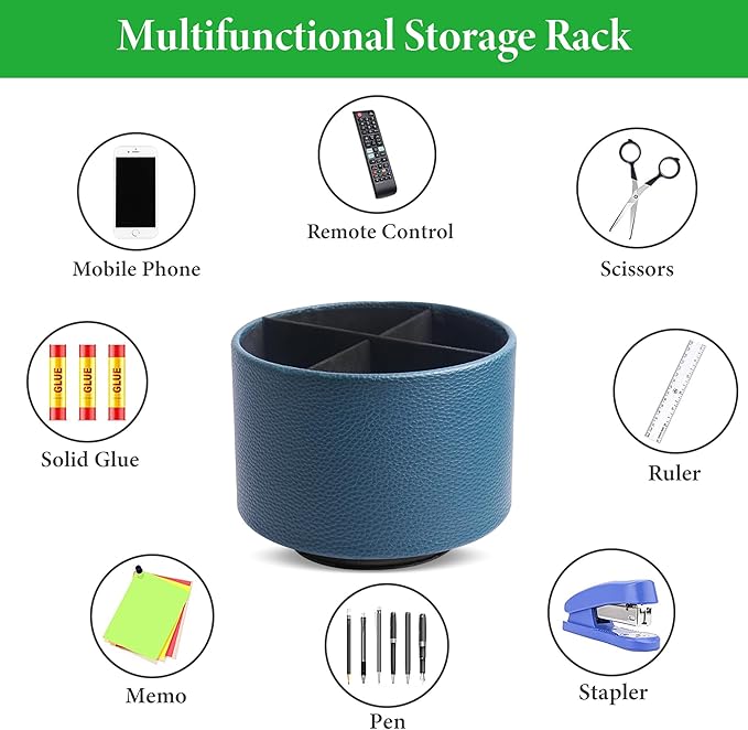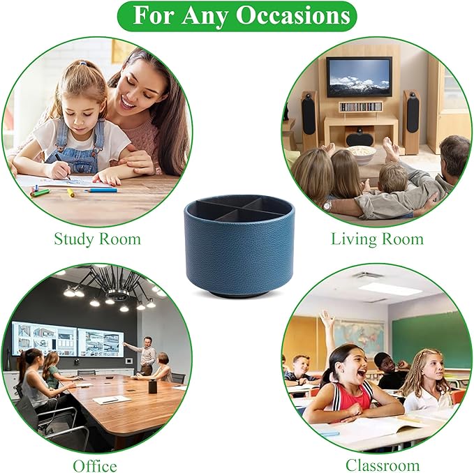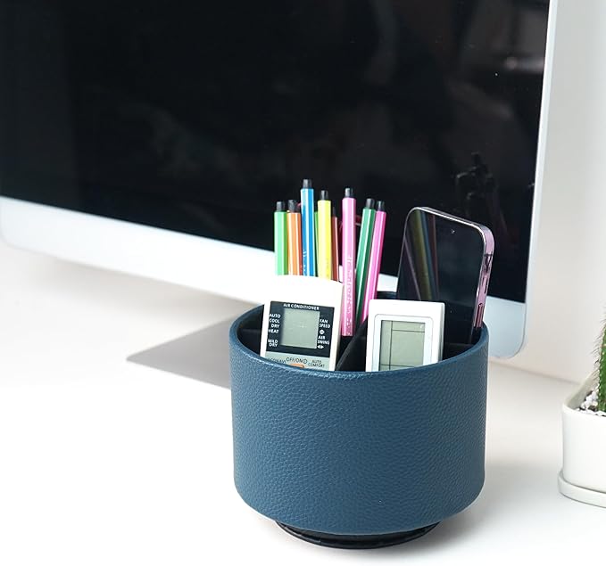 - ✎360° Revolving Design: You can freely rotate the pen holder steadily left and right,unique spinning base design allows easy access to items from any directions.The non-slip pads on the bottom keep it stay in place when rotating.