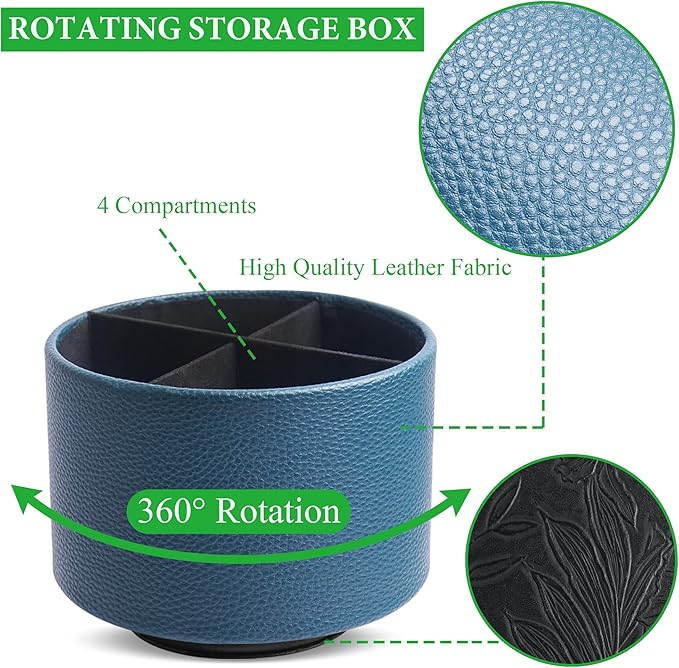 Hennaja Round Leather Art Supply Organizer,Remote Control Holder,360 Degree Spinning,Multi-Functional Pencil Holder,4 Compartments Desktop Stationary Organizer(1-Lichee Green)