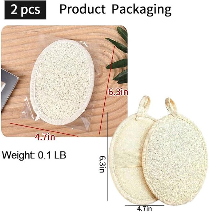 Natural Loofah Exfoliating Body Scrubber Loofah Bath Sponge, Luffa for Women and Men, Dishcloth Kitchen Cloth,100% Biodegradable Compostable, Dye Free (2 Pack) (S)