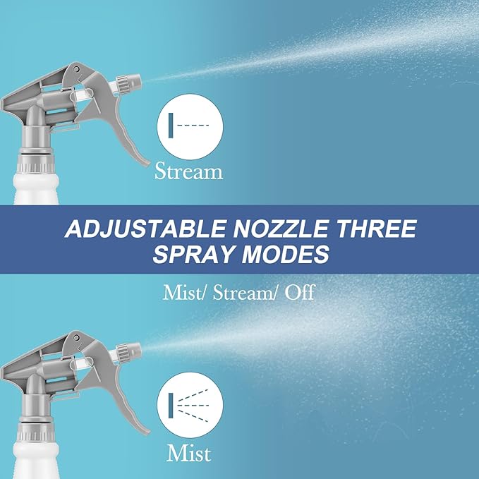 - Adjustable Nozzle: these empty spray bottles are designed with adjustable nozzle, there are three different modes, easy to rotate and use, the straw goes straight to the bottom of the bottle, avoiding wasting and spraying a drop, providing convenience to your life