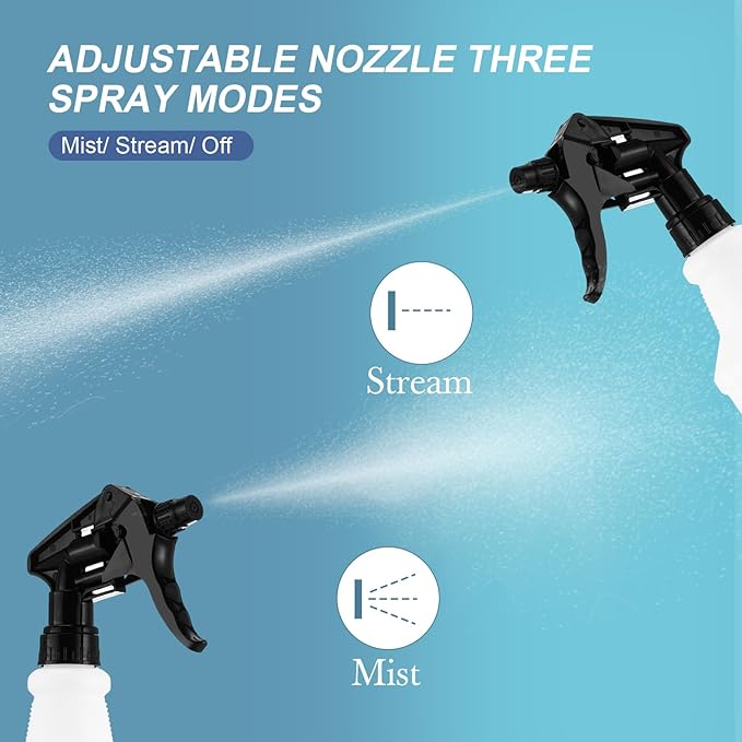 - Adjustable Nozzle: these empty spray bottles are designed with adjustable nozzle, there are three different modes, easy to rotate and use, the straw goes straight to the bottom of the bottle, avoiding wasting and spraying a drop, providing convenience to your life