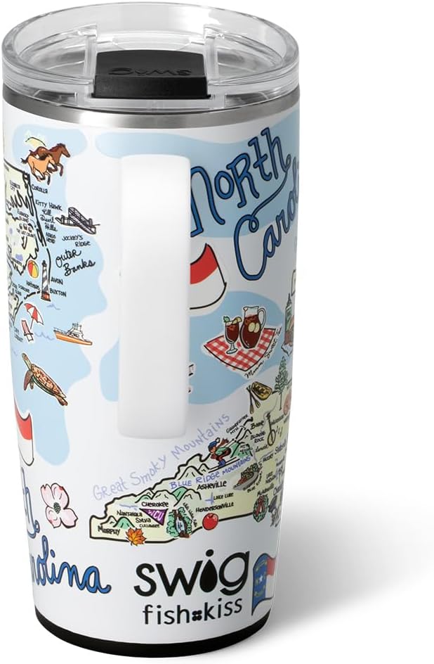 Swig Life 22oz Travel Mug, Insulated Tumbler with Handle and Lid, Travel Coffee Mug, Cup Holder Friendly, Stainless Steel 22 oz Tumbler, Reusable Insulated with Lid (North Carolina)
