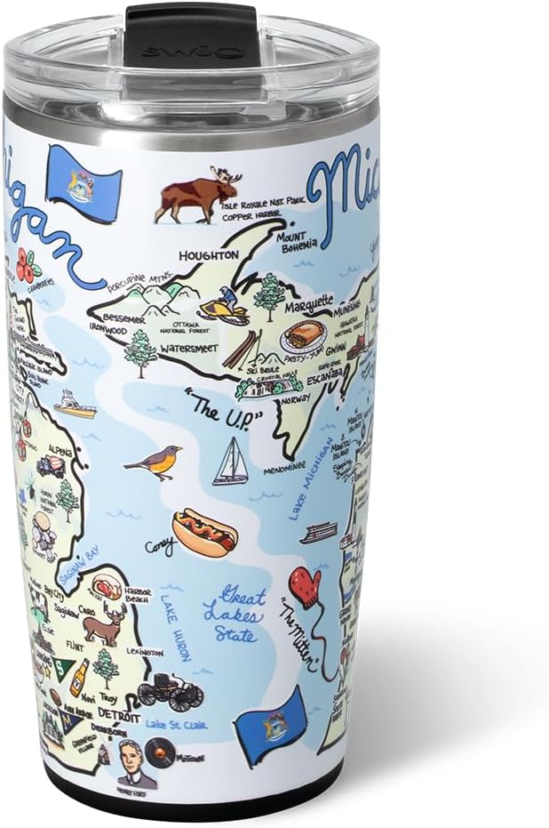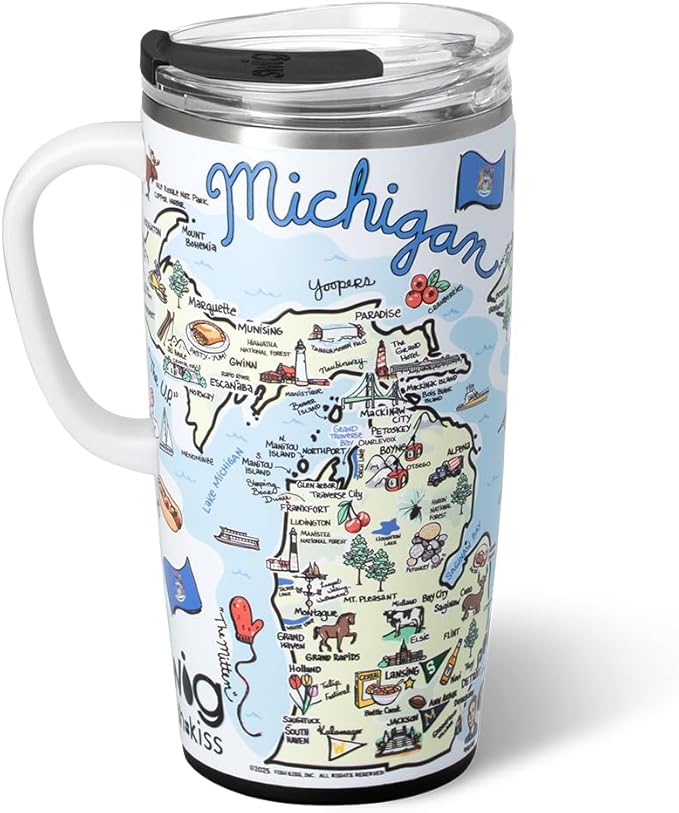Swig Life 22oz Travel Mug, Insulated Tumbler with Handle and Lid, Travel Coffee Mug, Cup Holder Friendly, Stainless Steel 22 oz Tumbler, Reusable Insulated with Lid (Michigan)