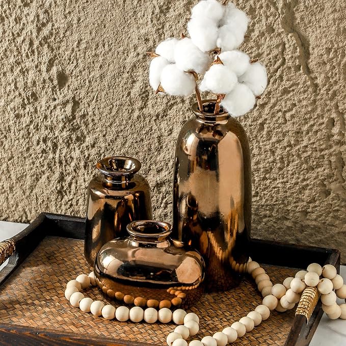 - Exquisite Ceramic Craftsmanship – Crafted from premium clay and high-fired for durability, this vase set of 3 features a glossy, corrosion-resistant finish and waterproof interior—ideal for fresh flowers. With thickened bases, refined texture, each vase subtly shifts in color under light, adding timeless elegance to any space.