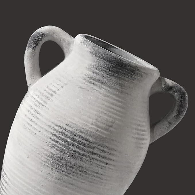 - Farmhouse Decor: Stylish and visually appealing, this gray vase is perfect for decorating your living room, bedroom, bathroom, bookshelf, mantel, coffee table, entryway, cabinet, and more