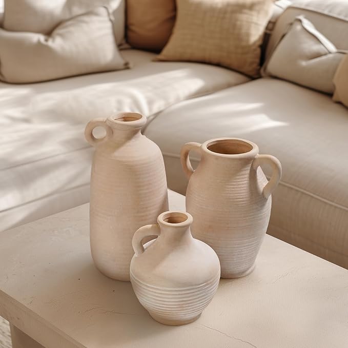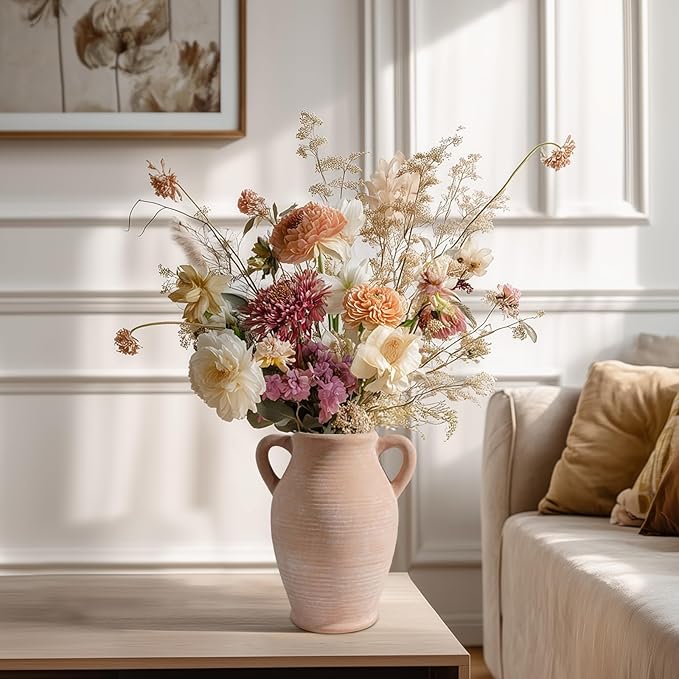 Sunddo Terracotta Vase with 2 Handles, 8 inch Rustic Ceramic Vase, Farmhouse Decor, Table Living Room Bedroom Fireplace Decor