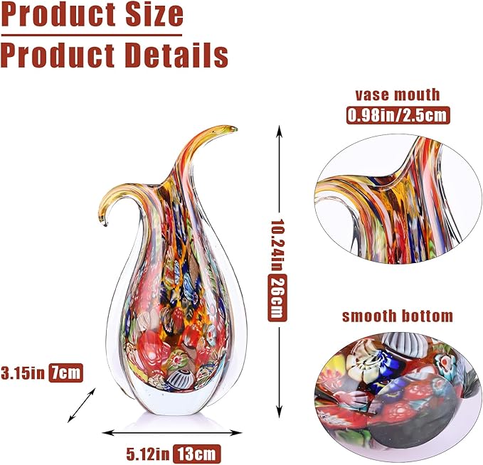 - Multi-Use Decoration – Shelf Accent, Office Piece, or Artistic Paperweight Whether you’re styling a shelf, refreshing your office, or adding a visual spark to your entryway, this murano glass vase offers endless possibilities. It can also function as a decorative paperweight, blending artistic expression with utility—making it a conversation starter for centerpieces or stylish decorations.