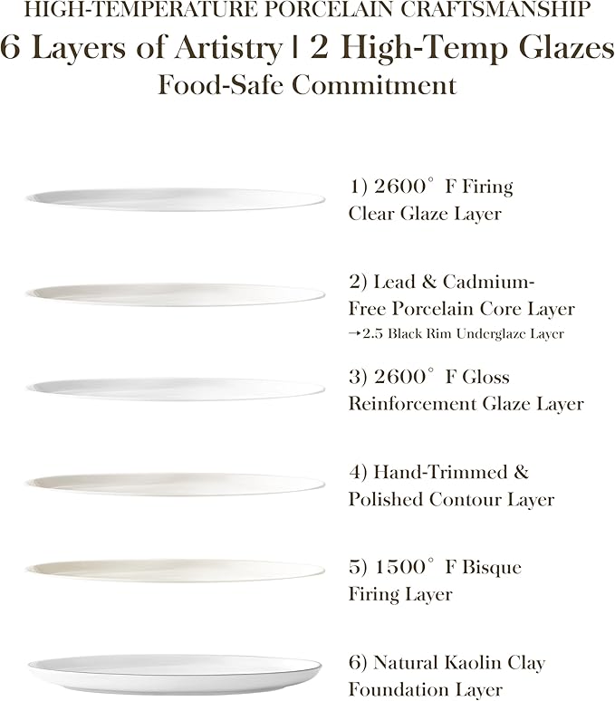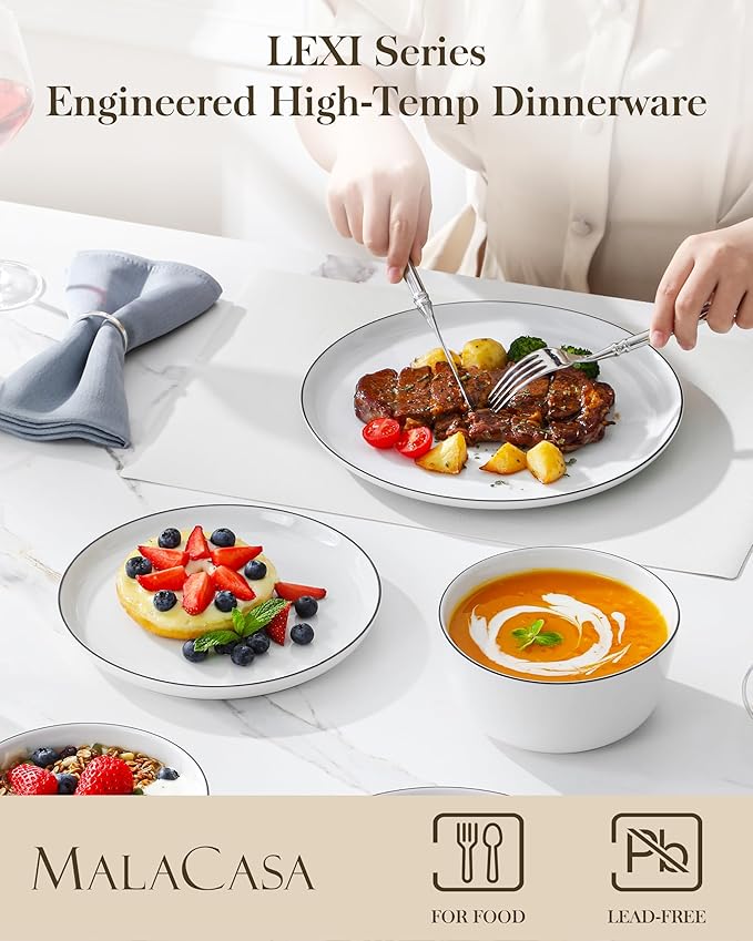 - 【ECO-FRIENDLY & HEALTH-CONSCIOUS】Crafted from premium natural kaolin clay and fired at ultra-high temperatures, LEXI dinnerware is 100% lead-free & cadmium-free. Designed to meet international safety standards including FDA requirements for food safety, offering peace of mind with every meal.