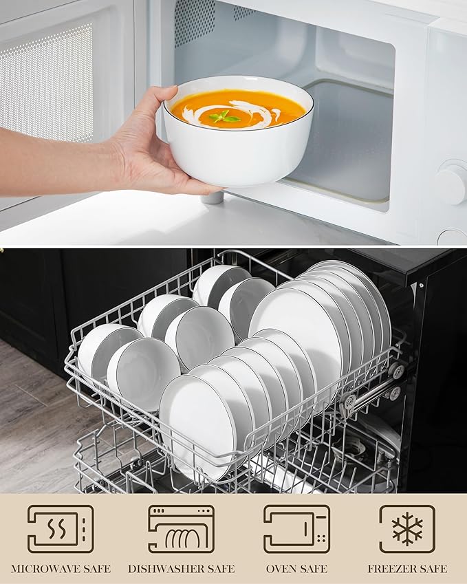 - 【DISHWASHER & MICROWAVE SAFE】MALACASA Plates and Bowls Sets have undergone rigorous testing in globally recognized laboratories to ensure they are safe for use in both dishwashers and microwaves. Rest assured, each plate and bowl is 100% dishwasher safe and microwave safe.