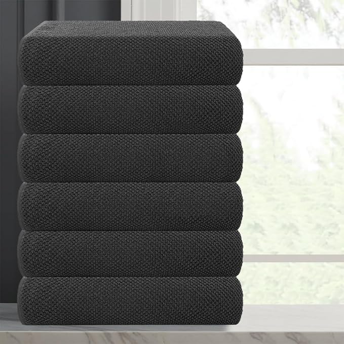 CASA COPENHAGEN Popcorn Textured 6 Pieces Small Bath Towel Set - Pine Grey, 24" x 48", 550 GSM 6 Bath Towel Rough & Tough Use Cotton Towels Gift Set for Bathroom