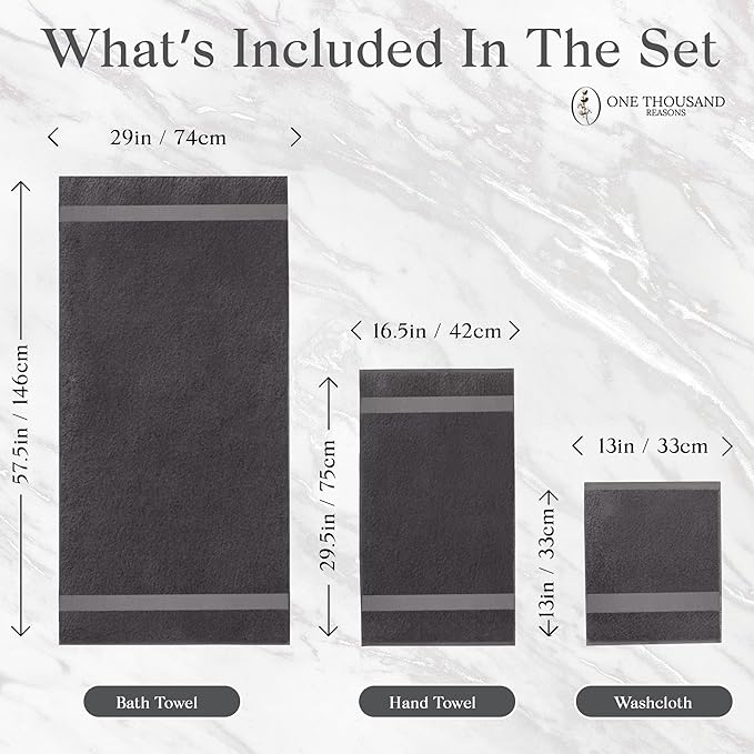 Premium Staple Cotton Bathroom Towel Set - Dark Gray 600 GSM 6-Piece Luxury Bath Towel Set 1 Stripe - 2 Bath Towels, 2 Hand Towels & 2 Washclothes Set - High Absorbent & Quick Dry for Gym, Spa, Hotel