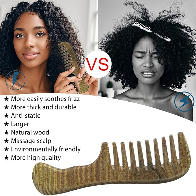 - Versatile Usage: Suitable for both wet and dry hair, this wooded wide tooth comb can be used for styling, detangling, or scalp massaging. Effectively targeting not just the head but also the neck, back, hands, and arms. Regular use helps to alleviate stress and boost energy levels.