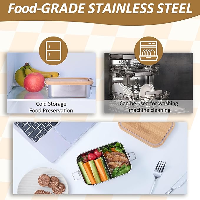 - STAINLESS STEEL LUNCH BOX FOR ADULTS AND KIDS: Built with premium 304 stainless steel, this lunch box is tough, safe, and designed for daily use. Say goodbye to flimsy plastic and hello to a reliable lunch container you can trust for your meals.