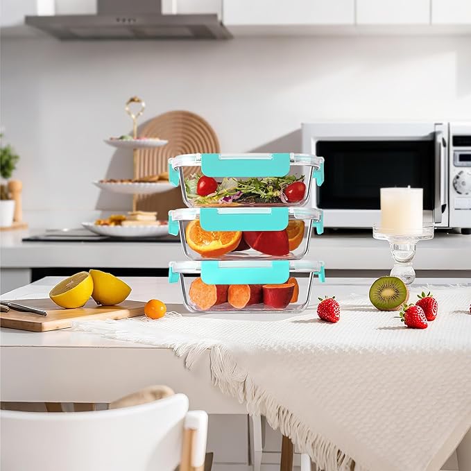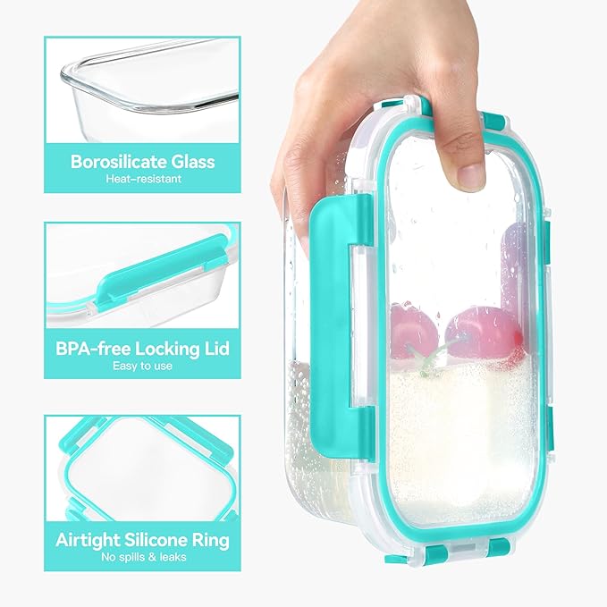 - HIGH QUALITY GLASS: Crafted from high borosilicate glass, these glass food storage containers are microwave, oven, and freezer safe(lid removed when heating). Perfect for meal prepping, reheating leftovers, or storing food.