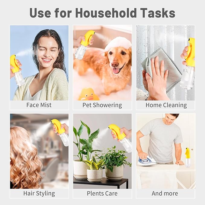 Continuous Ultra Fine Mist Spray Bottle (200ml) 360° Multi-Use for Hair, Plants, Cleaning, Skin Care Leakproof & Durable Banana Yellow 1 Pack