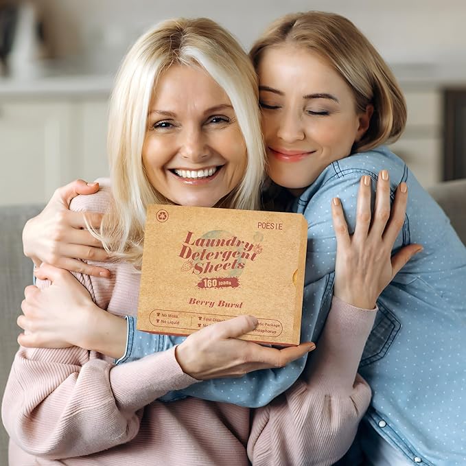Poesie Laundry Detergent Sheet Berry Burst Scent 160 Sheets No Plastic Jugs No Messy Liquid Powder Camping Travel RV Trip Laundry Cleaning Sheet for Hand Wash Machine Wash