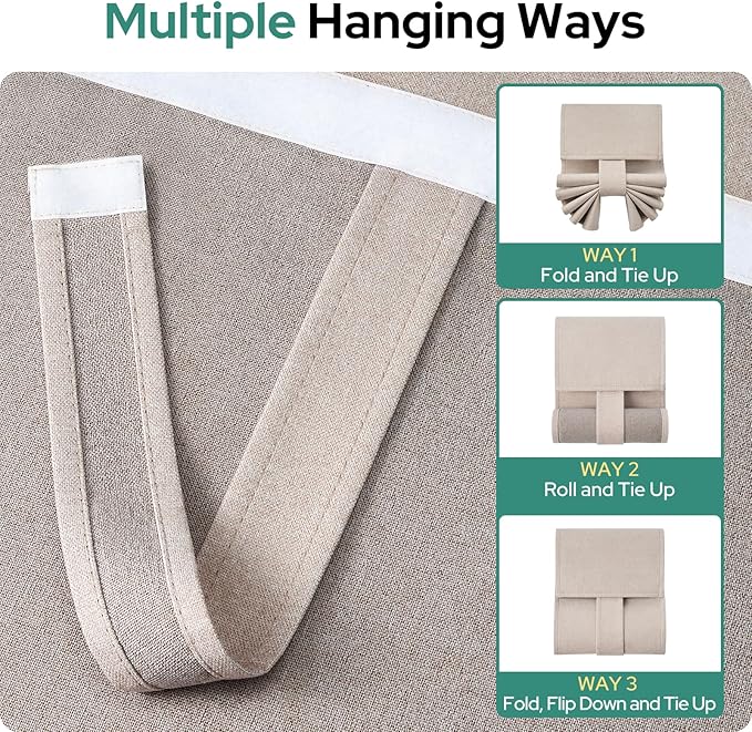 - 🌸100% BLACKOUT CURTAINS: HOMEIDEAS linen door curtains with the same color and texture on both sides without coating on the back. The environmentally dual-sided linen textured fabric can block out 100% of sunlight and UV rays and provide a good sleeping environment during the day.