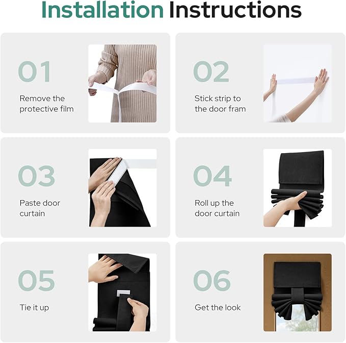 - 🌸EASY HANGING: The package includes 1 door curtain panel and 1 adhesive strip. It can be easily installed without any tools or curtain rods. Just follow our instructions picture to install, put the sticky strip on the glass, and join together with the sticking place on the door curtain panels firmly.