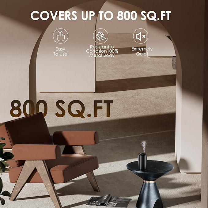 - Wide Coverage & Compact and Efficient: The Diffuser for Essential Oils can cover an area of up to 800 sq. ft and operates efficiently in large spaces. It effectively eliminates and masks unpleasant odors in areas such as pet rooms and bathrooms.