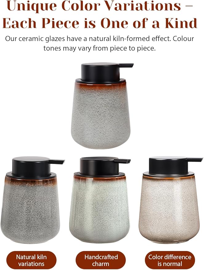 - High-end Minimalist Style: The simple and versatile design of our empty pump bottles makes you comfortable and easy to use, you could feel free to make use of this ceramic bottle, great for liquid soap, dish soap, bath gels or shampoo