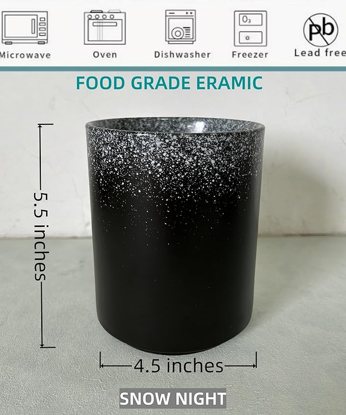 Medium Stoneware Kitchen Utensil Holder for Kitchen Counter Short Cooking Utensil Holder for Countertop Spatula Holder Small Utensil Crock Cutlery Holder Silverware Caddy Flower Vase (Snow Night)