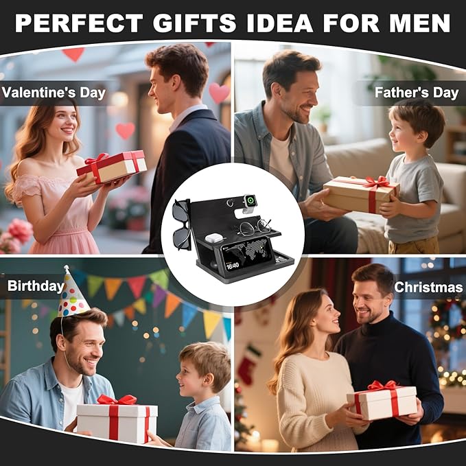 - 3 In 1 Charging Station Apple: Surprise him with a iphone charger stand, ideal for iphone 11 - 16 Series Pro Max Plus And More charger, apple watch, and airpods. A practical who love apple tech gifts for men.