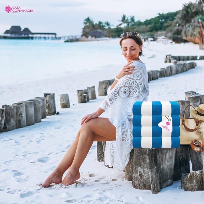 CASA COPENHAGEN Cabana Beach Designed in Denmark Rough and Tough, Quick Dry, Pool, Bath & Shower 30x60 inches 4 Pieces Cotton Beach Bath Towels Set - Turquoise