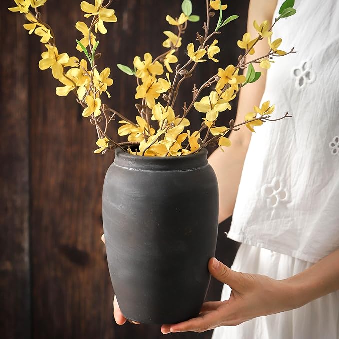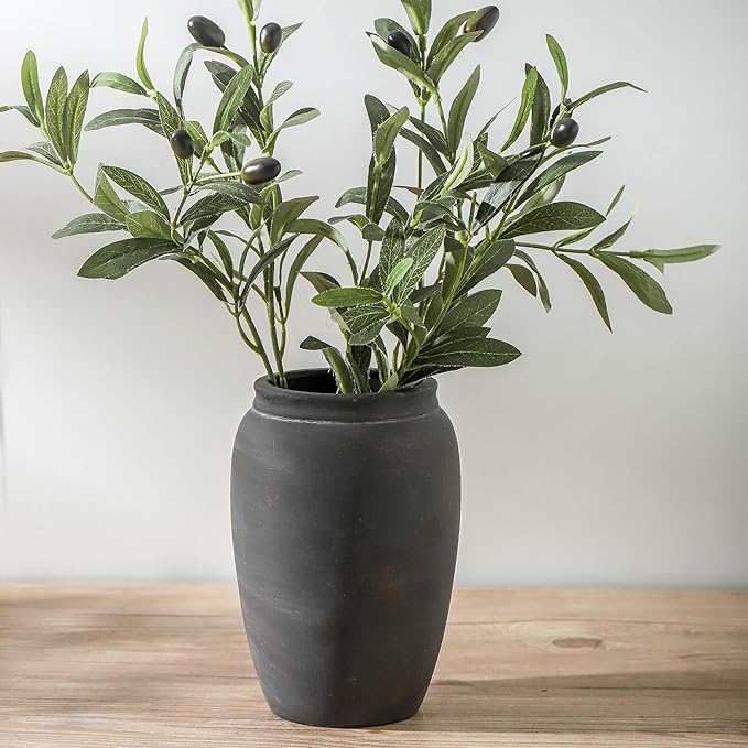 Terracotta Rustic Vase, Farmhouse Decorative Vase Boho Decor, Ceramic Christmas Vases for Home Decor, Table, Living Room, Shelf Decoration, 8.2 Inch