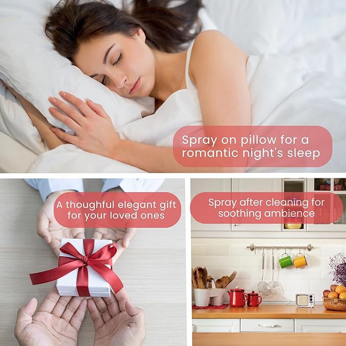 - When to Use: In the morning to set a calm, graceful tone for the day. After cooking to refresh the kitchen with soft floral notes. Before meetings or focus sessions to create a calm office vibe. While driving to transform your car into a soothing, fragrant retreat. Before bed to wind down and invite deep rest. Before meditation, yoga, or journaling to create a serene atmosphere. Anytime you need a romantic, grounding escape.