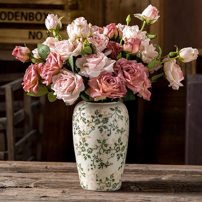 - Effortless Maintenance & Styling: Designed for easy cleaning and long-lasting use, this beige and green vase seamlessly blends with various themes—from vintage home decor to modern farmhouse. Its neutral palette complements white vases home decor setups and chinoiserie decor collections.