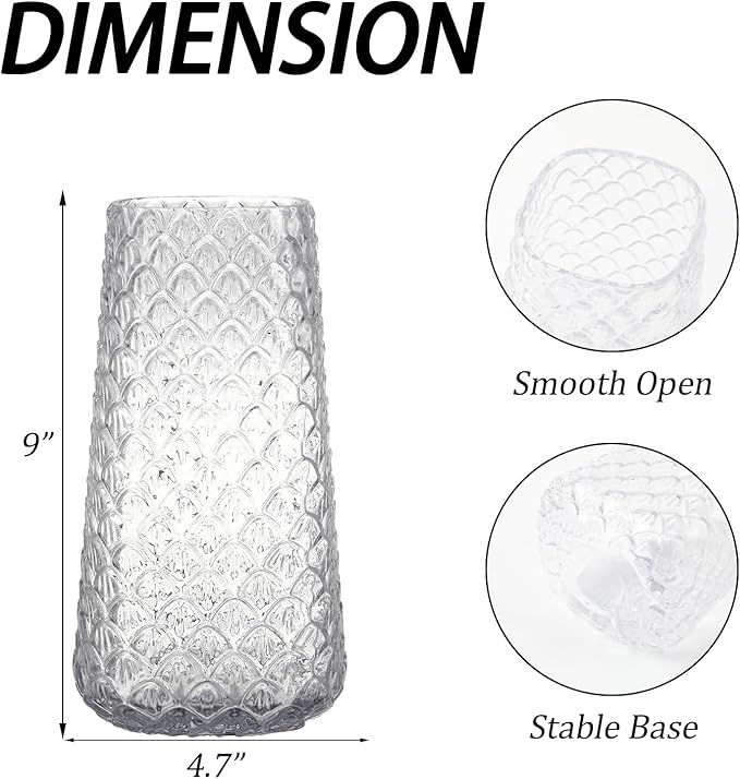 - Unique Design: This clear glass vase features an eye-catching textured pattern, adding a touch of elegance and visual interest to any space. The unique design reflects light beautifully, enhancing the overall aesthetic of your home decor. Whether used as a tall glass vase for statement floral arrangements or as a standalone piece, it effortlessly elevates any room