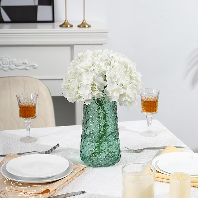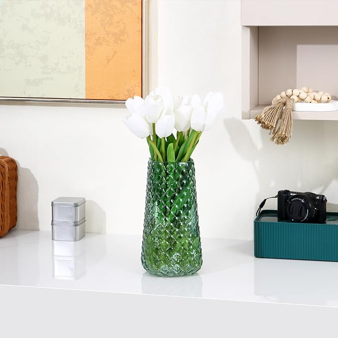 Glass Vase, Green Flower Vase for Bouquet, Large Glass Vases for Flowers, Modern Vases for Living Room, Bedroom, Dining Table, Office, Kitchen, Wedding, 9 Inches