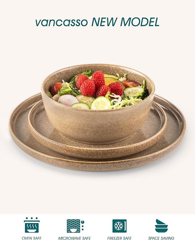 vancasso ANYA 18 Pieces Plates and Bowls Set, Caramel Dinnerware Sets, Reactive Glaze Dishes Set for 6, Ceramic Dishware Sets Kitchen Dinner Set, Microwave & Dishwasher Safe