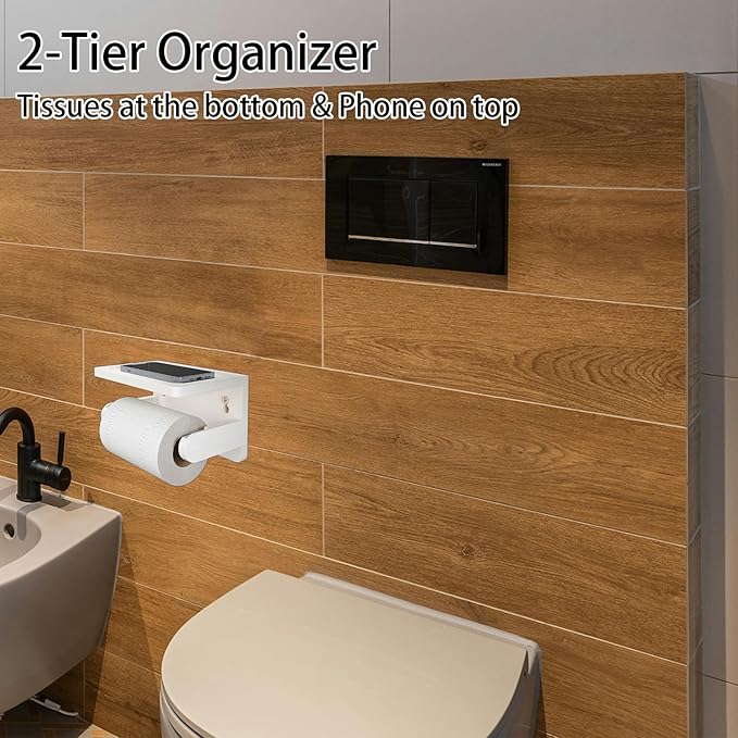 - 【Multi-Functional Storage】Combines a toilet paper holder, phone shelf, and small storage tray (for keys, jewelry, etc.), maximizing space efficiency and reducing bathroom clutter.