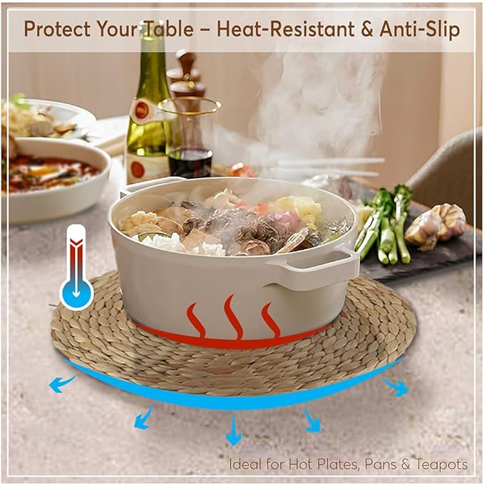 - Heat Resistant & Table Protection: Protect your surfaces with these thick wicker round placemats, expertly crafted for heat resistance. Use them as woven chargers to support hot dishes or as stylish woven chargers for dinner plates. Each woven charger is designed to be sturdy and elegant, giving your table setup a touch of rustic natural beauty.