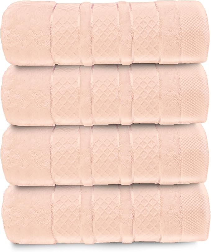 Premium Towel Set: Super absorbent, quick-drying, soft, plush. Features hanging loop, fade-resistant, eco & skin-friendly dyes. Luxury dobby design for bath or spa. (Blush Pink, Bath Towel Set of 4)