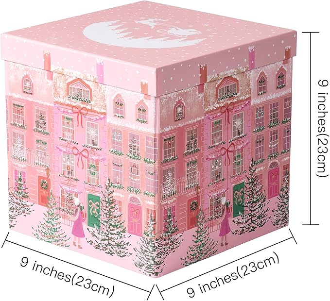- Whimsical Pink Design: The box features a beautifully illustrated pink townhouse street scene decorated with wreaths, trees and holiday lights. A dreamy winter village aesthetic perfect for feminine and elegant holiday gifting