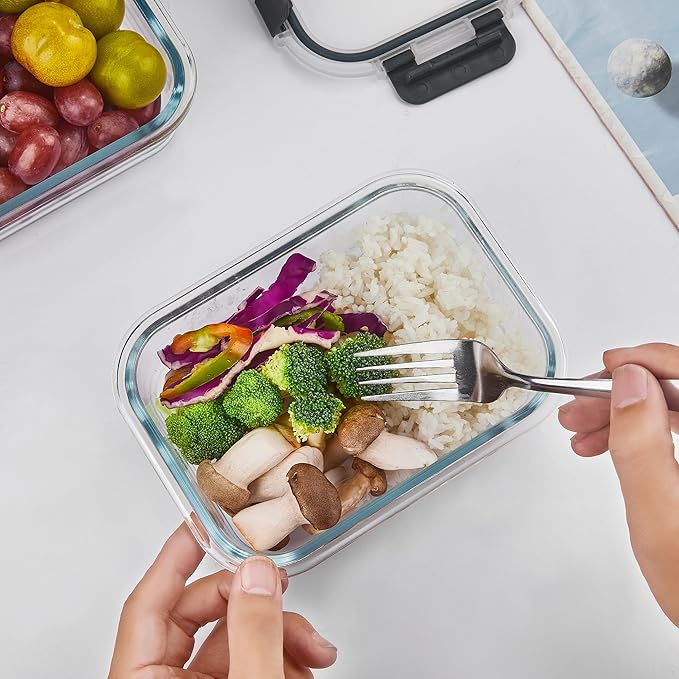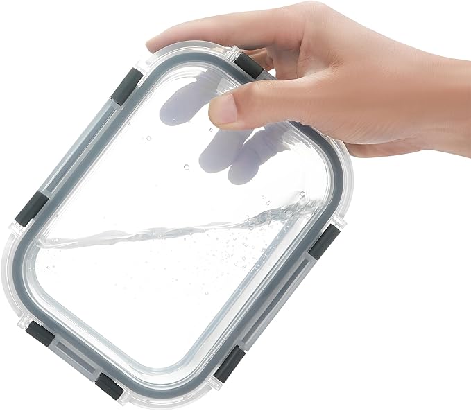 - Airtight Locking Lids: These glass food containers feature removable silicone seals and 4-hinge snap locks to prevent leaks, ensuring your food stays fresh; The lids are easy to open and close; Remember to remove the lid before heating or washing