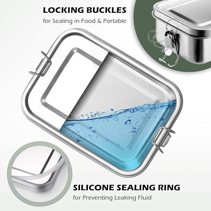 - Perfect Leak-Proof, this stainless steel lunch box containers is leak-proof with lock clips and removable silicone seal could keep your food fresh and won’t leak out. Put it into your bag or accidental impact, the lids won’t open. Got this leak proof bento box, the scattered food won’t happen to your bag