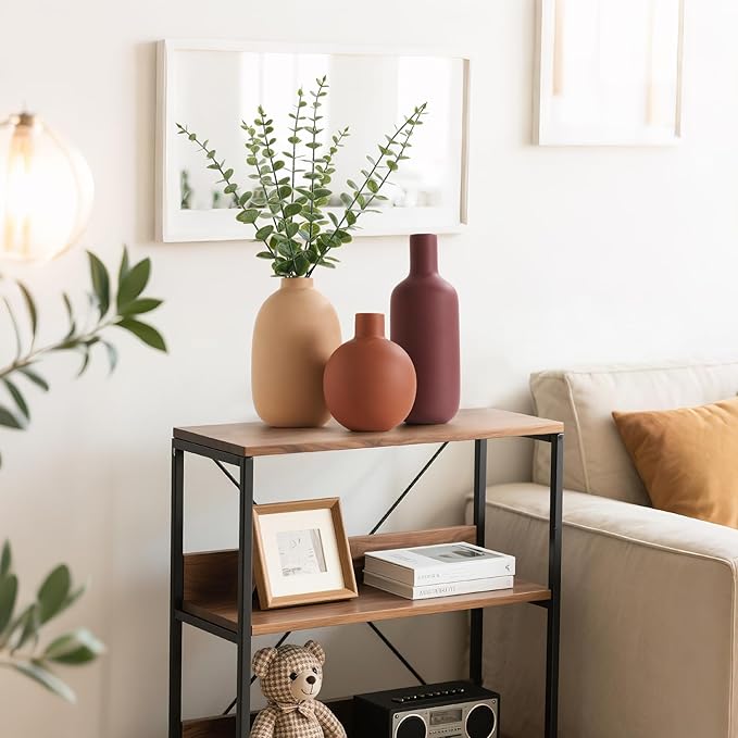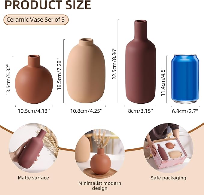 - 【Modern Design】Ceramic vases set of 3 contemporary ceramic vases featuring sleek silhouettes in harmonious matte finishes of blush Beige, terracotta, and burgundy colors.The color combination design is inspired by the warm earth tones of the Grand Canyon in Arizona. The modern vases shape is matched with natural earth tones, which will be a very special decoration.