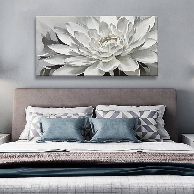 TAIJXAGSG Canvas Art Wall Decor lotus Print Paintings Flower White Wall Art Prints Decor Ready To Hang For Bathroom Bedroom And Office Kitchen Home Decor Artwork 20" × 40"